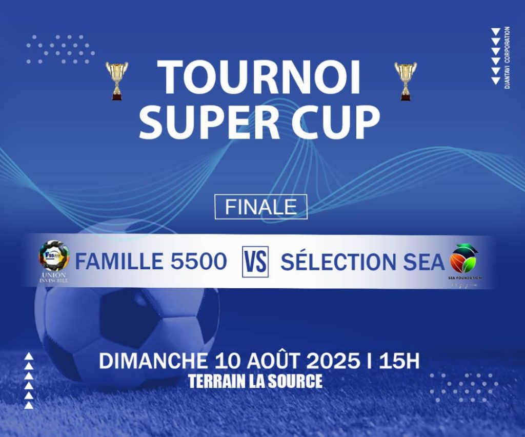 Après une semaine de compétition, la Super Coupe 2025 livrera son verdict ce dimanche 10 août, sur le terrain de La Source à Agoè, avec une affiche de rêve : Famille 5500 face à la Sélection SEA.