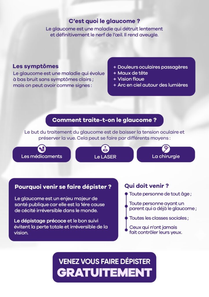 La semaine mondiale du glaucome , 09 au 15 mars, vise avant tout à sensibiliser les populations à cette maladie silencieuse, qui demeure l’une des principales causes de cécité évitable dans le monde. En encourageant le dépistage précoce et en informant le public sur les facteurs de risque, les professionnels de la santé espèrent réduire le nombre de personnes touchées par cette affection.