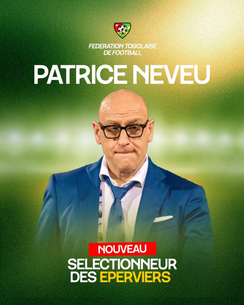 La Fédération Togolaise de Football (FTF) a officialisé la nomination du technicien français Patrice Neveu au poste de sélectionneur national. À 71 ans, l’expérimenté entraîneur succède à Nibombé Daré avec une ambition clairement affichée : repositionner le Togo parmi les nations compétitives du football africain.