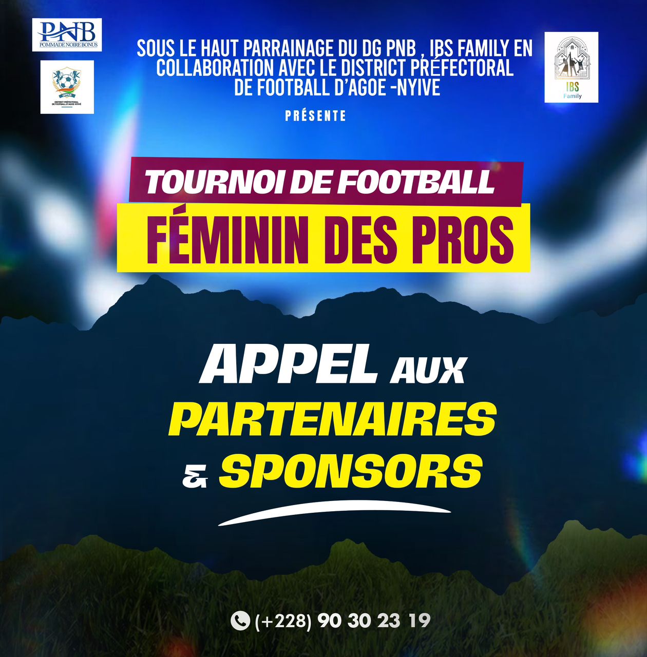 Le football féminin togolais s’apprête à vivre un événement d’exception. L’organisation IBS Family, sous le haut parrainage du DG PNB (Pommade Noire Bonus) et en collaboration avec le District Préfectoral de Football d’Agoè-Nyivé (DPFAN), lance officiellement les inscriptions pour le prestigieux Tournoi de Football Féminin des Pros. Cet événement dépasse la simple compétition sportive : il constitue une plateforme unique de visibilité et d’émancipation pour les joueuses togolaises, valorisant leur talent, leur technique et leur détermination.
